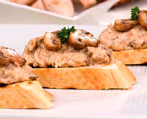 - Con dos cucharas, darle forma redondeada y ponerla sobre una rebanada de pan. Decorar con los champiñones asados con un poco de perejil.