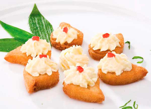 - Decorar los panes con una roseta de crema parmesana.