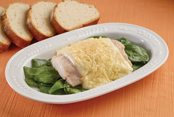 - En cada plato de servicio, coloque una porción de las espinacas salteadas, sobre ellas un filete de pescado, cubra con la salsa blanca de Queso y espolvoréela con más Queso Añejo Tachirense Paisa rallado